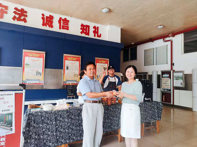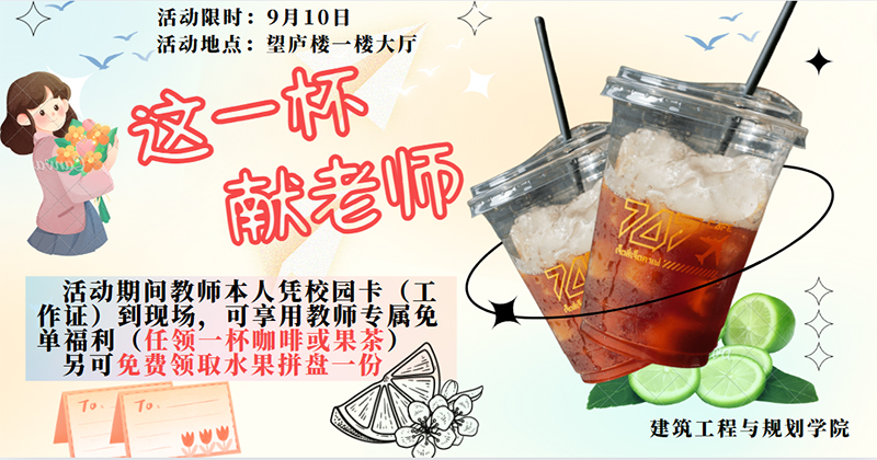 风景园林专业的林娴同学说:“一杯咖啡和果茶是微不足道的,但是200杯咖啡和果茶加在一起,汇聚成了师生的情谊,老师为员工们点亮了求知的灯塔,我们用行动表达对老师的感谢和教师节的祝福。”